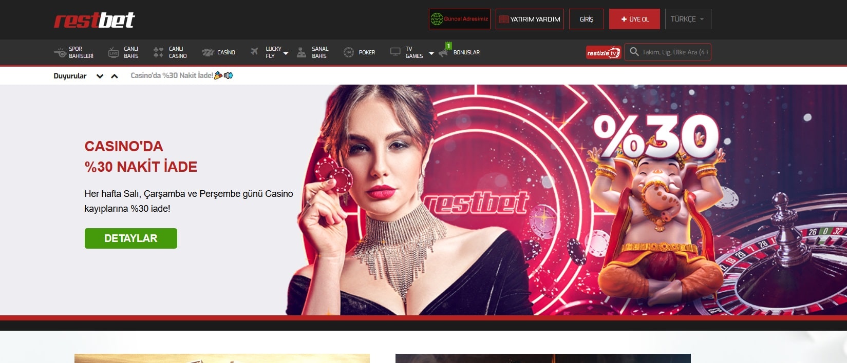 En popüler oyun seçeneklerine bünyesinde yer veren Restbet güncel giriş adresi nedir; güncel adres sosyal medya hesaplarından ve SMS yolu ile müşterilere anında iletilir. Bahis severler Curacao lisanslı bahis sitesine güncel adres üzerinden erişim sağlayarak sunulan hizmetleri değerlendirme fırsatı yakalar. Yüksek bahis oranları, farklı birçok spor dalı ve canlı bahislerin yanı sıra casino ve canlı casino oyunları da sitede mevcuttur. Evolution Gaming, Poker Klas gibi birçok alt yapı sağlayıcısıyla çalışan bahis ofisine üye olmak tamamen ücretsiz.